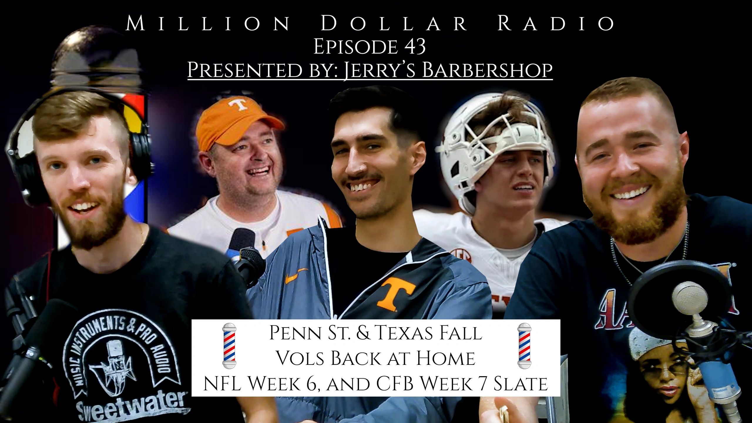 The boys react to Texas and Penn State falling out of the Top 25, Tennessee's home game vs. Arkansas on Saturday, and the rest of the CFB slate. On Sunday, Skylar's Packers host Griffen's Bengals after Cincinnati just traded for Joe Flacco - setting up for a Million Doll