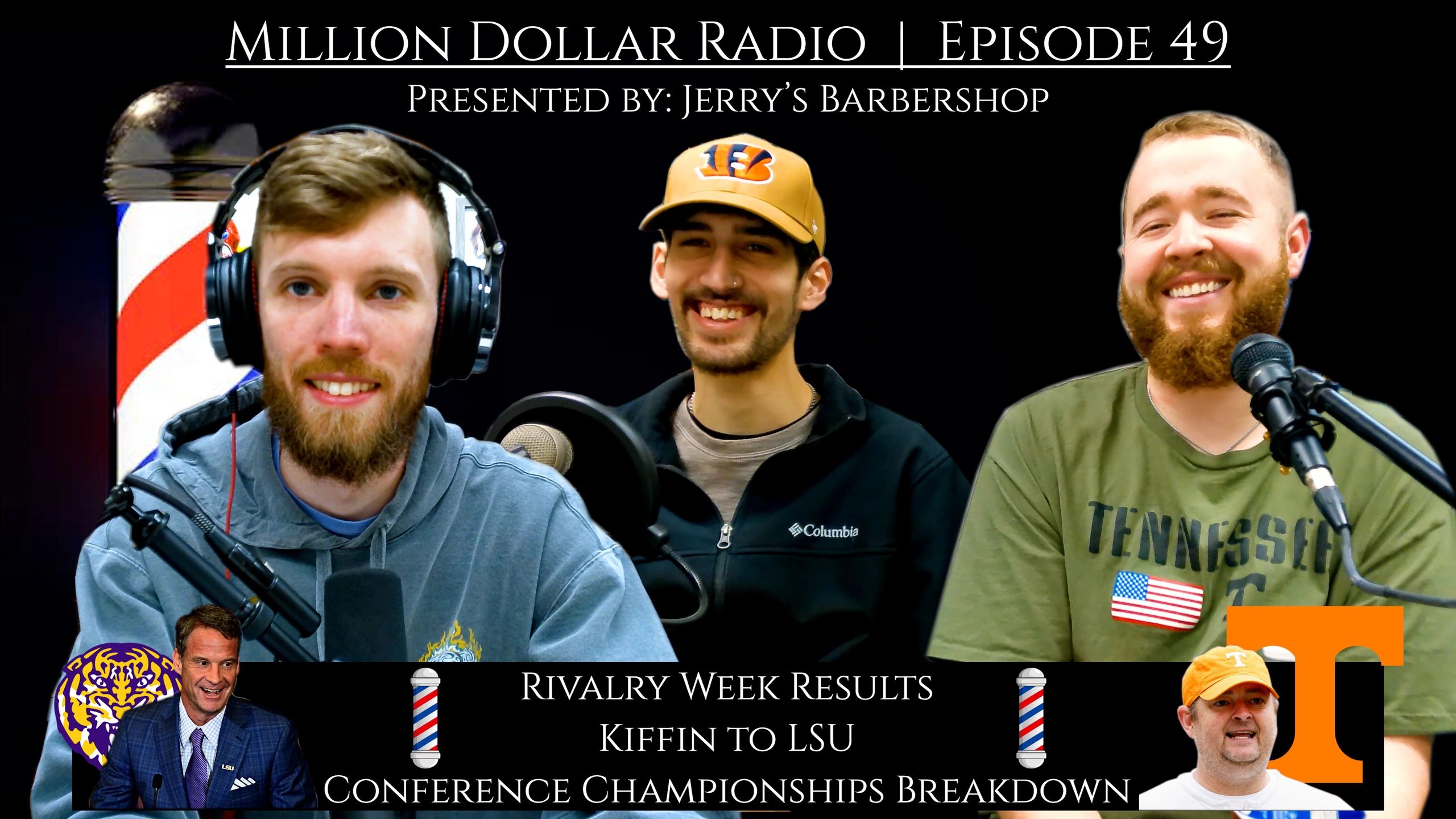 The CFB regular season has come and gone, and the boys recap the Rivalry Week slate and Tennessee's (8-4) record after a big loss to Vanderbilt. The Coaching Carousel is hot with five big hires including Lane Kiffin's move. Championship weekend is set, and the guys give their picks - presented by Jerry's Barbershop!
